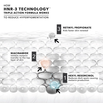 The Novology Bi-Phasic Hyperpigmentation Serum, powered by HNR-3 technology, combines Hexy|resorcinol, Niacinamide, and Retinyl Propionate to visibly reduce hyperpigmentation, dark spots, and post-inflammatory hyperpigmentation (PIH). Clinically proven from week 4, the serum addresses three pigmentation pathways for comprehensive results. Hypoallergenic and non-comedogenic, it offers effective and gentle care.